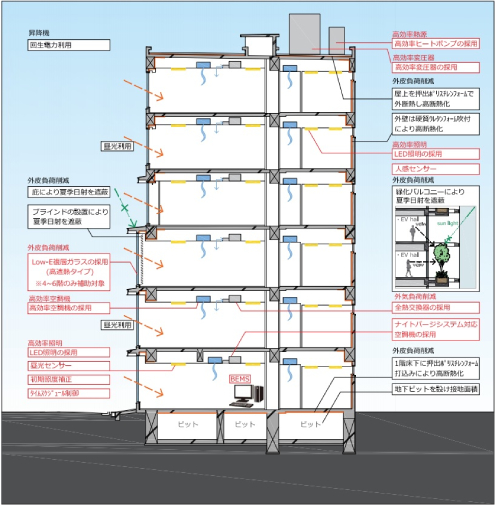 | 1 | SSビル | 東京 | RC 6F 1387㎡ | 2019 | ZEB Ready | 56% |